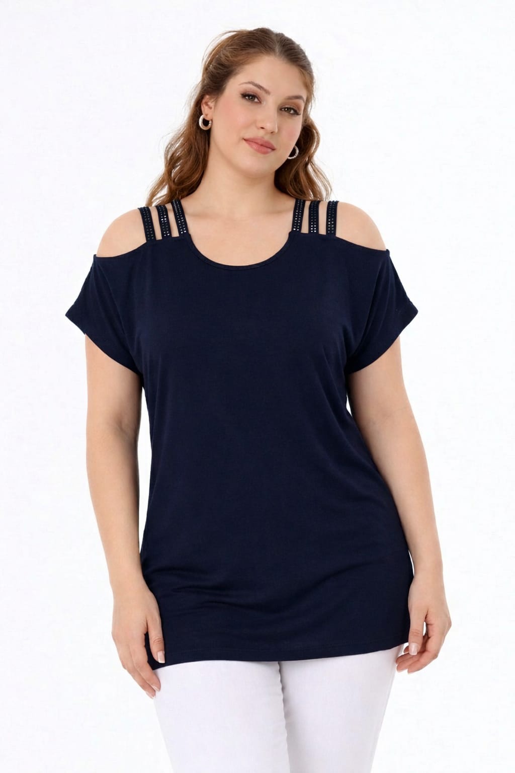 şerit askılı lacivert bluz