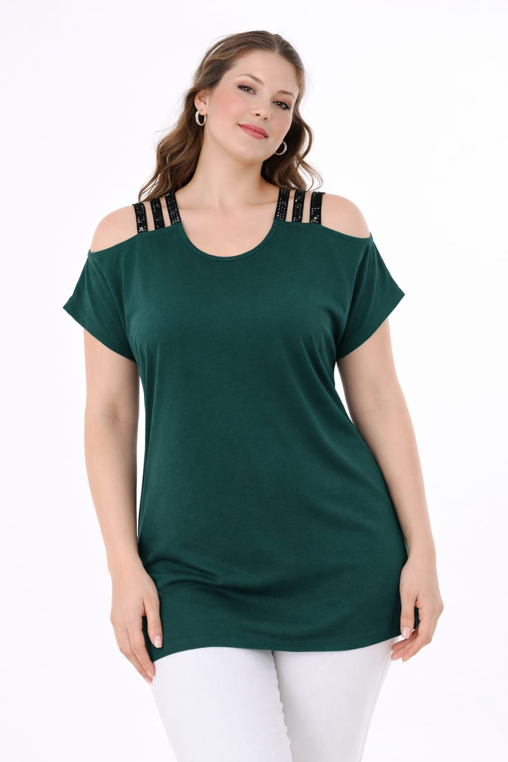 şerit askılı yeşil bluz