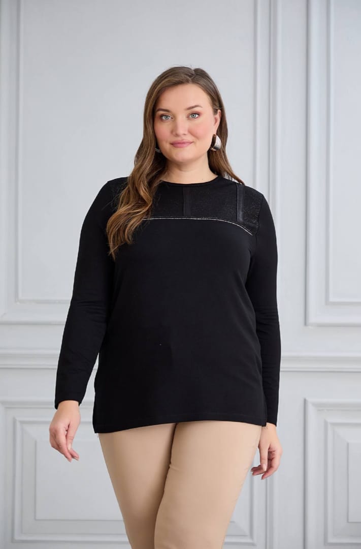 siyah sim detaylı bluz