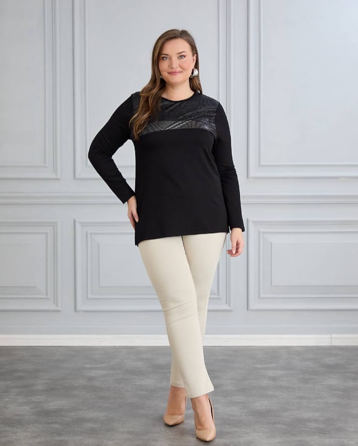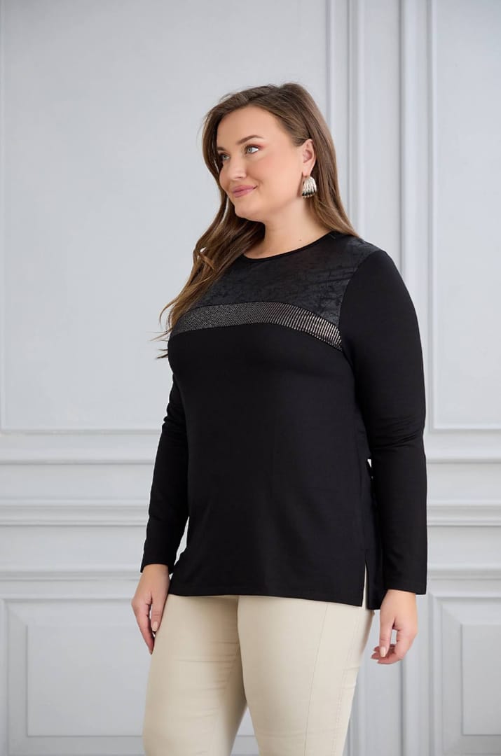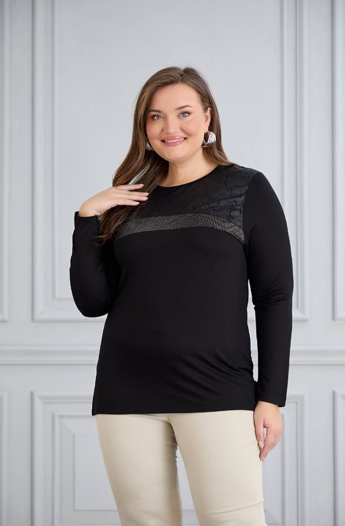 siyah taş detaylı bluz