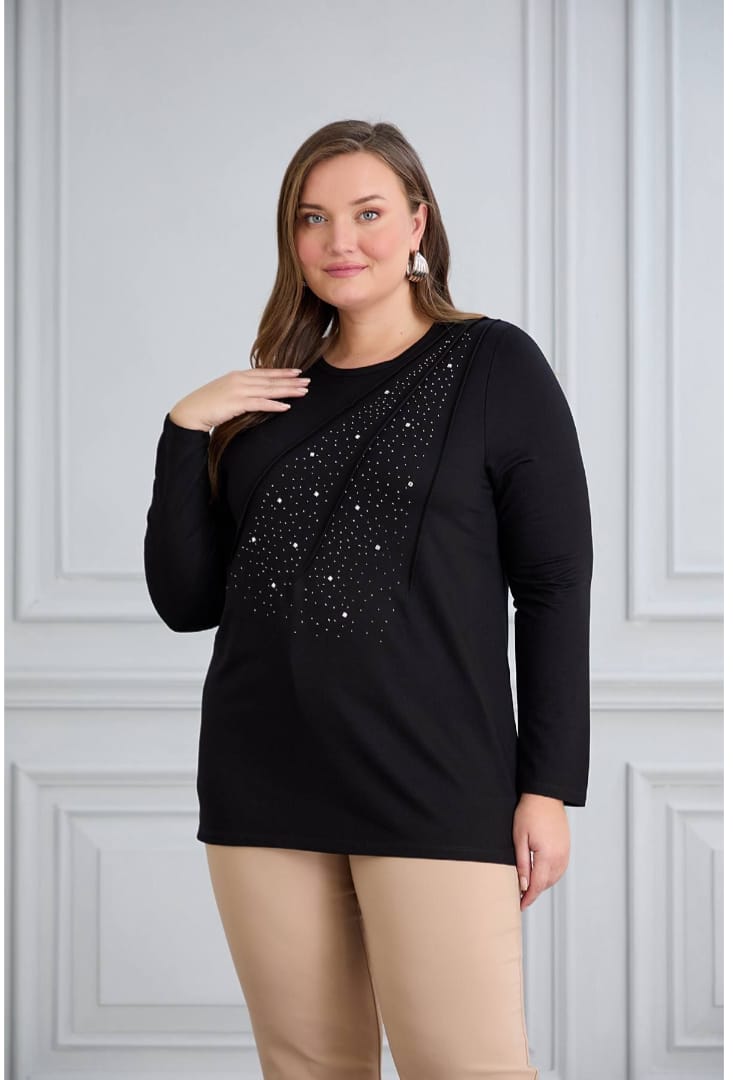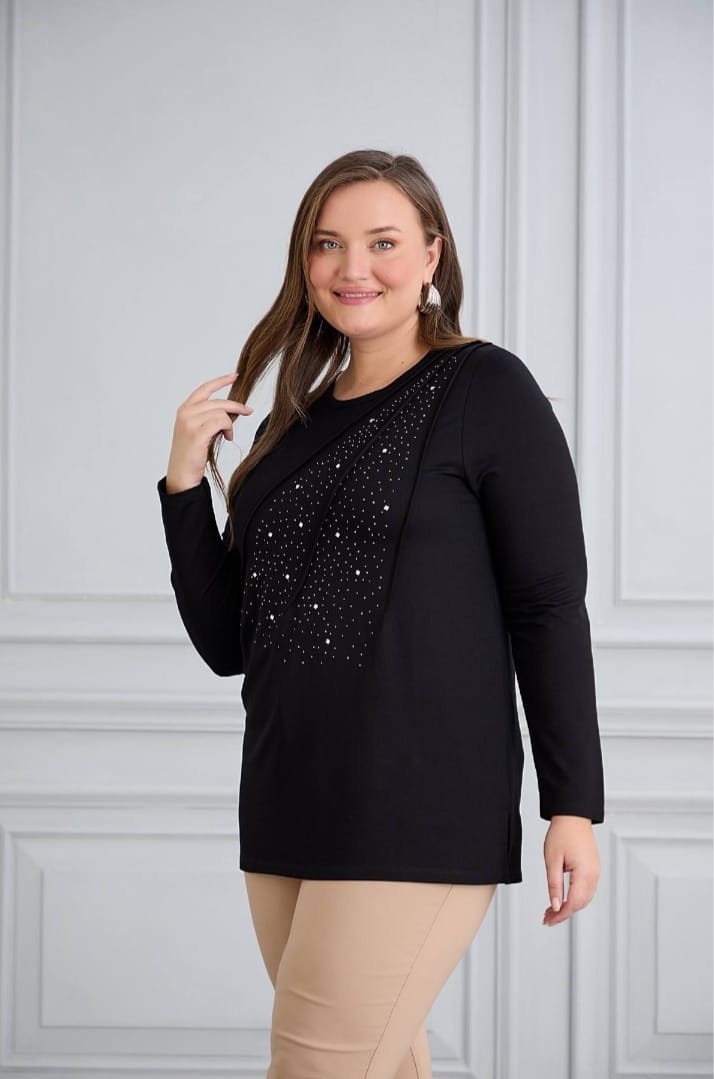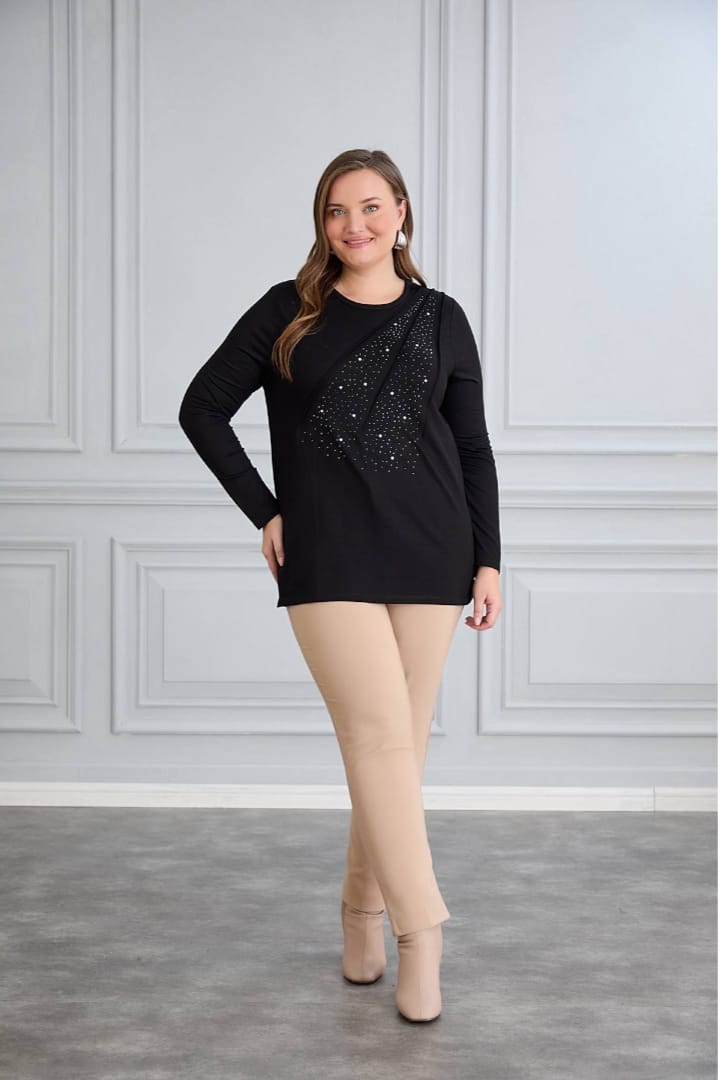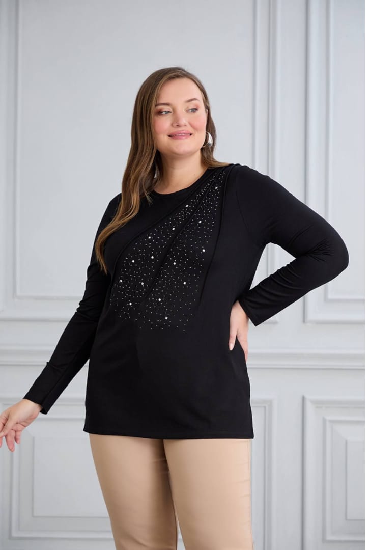 siyah taşlı bluz