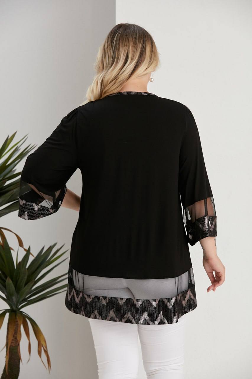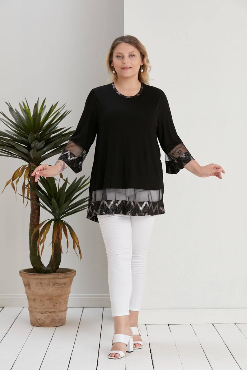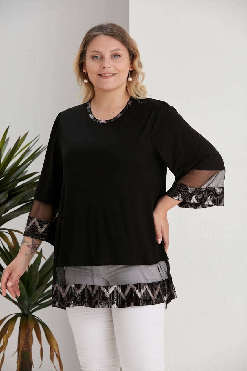 tül detaylı siyah bluz