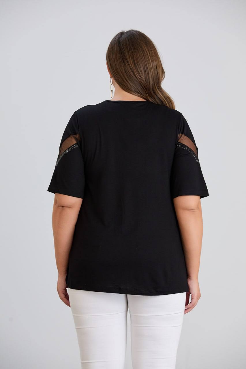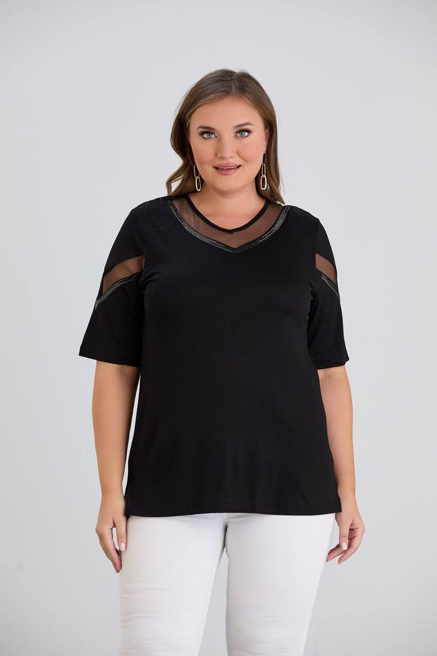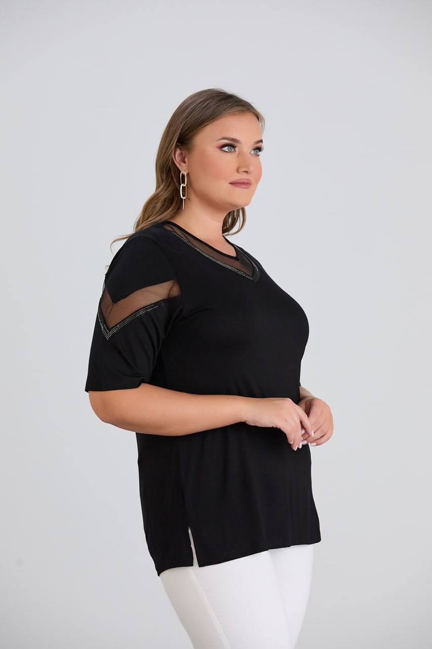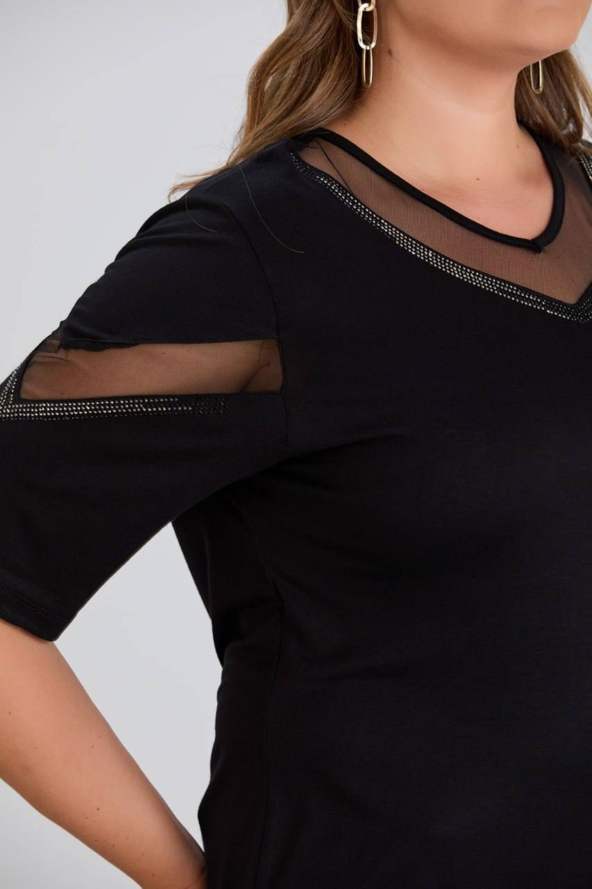tül detaylı siyah bluz